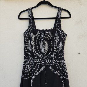 CHARO RUIZ Greba Long Embroidered Cotton-Linen Maxi Dress In Black. SIZE M. Very good, like new condition. No notable wear or flaws. MSMTS in images.