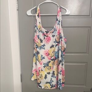 Vibrant tank top with floral design. Features pink, yellow, and blue flowers. Perfect for summer days.