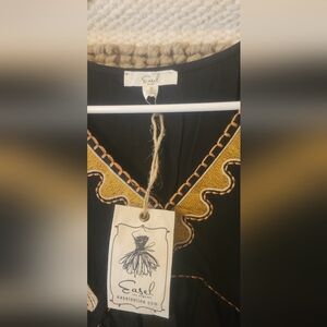 Easel Black and Tan Embroidered Dress