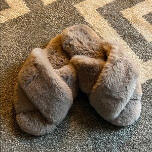 Step into luxury with these cozy faux fur slippers. Perfect for relaxing at home, these tan slippers offer both style and comfort.