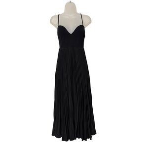 ANTHROPOLOGIE | $180 Sweetheart Bodice Pleated Midi Dress in Black, Size Small