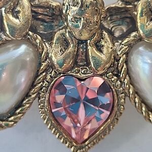 1928 Collection Vintage Cherub Heart Brooch with Pearl and Pink Heart Accents