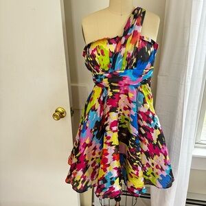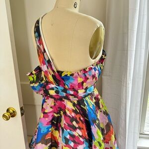 Anthropologie Minuet Multicolor One Shoulder 100% Silk Cocktail Dress