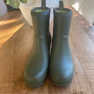 Sorel Joan Rain Chelsea Ankle Bootie Rubber Women's Olive Green Wedge Boots 8