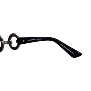 These stylish sunglasses feature a sleek black frame with eye-catching silver accents. Perfect for adding a touch of elegance to any outfit.
