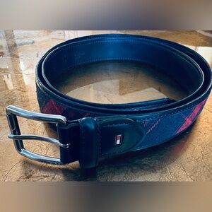Vintage Tommy Hilfiger Red and Navy Tartan Plaid Belt, Men’s Size 40