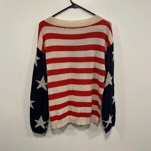 Show your patriotic spirit with this stylish star-patterned sweater. Featuring bold red, white, and blue colors, it's perfect for any casual occasion.