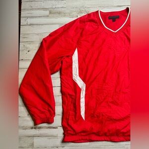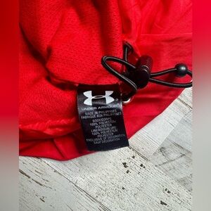 Under Armour Red White VNeck Lined Poly Windbreaker Pullover Drawstring Men 2XL