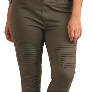 Umgee Khaki Moto Style Deep Tan Cotton Blend Stretch Pull On Jeggings Size Small