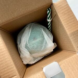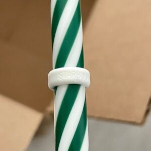 NWT/NIB Starbucks Bearista Bear Cup. Comes with the original box and Starbucks insert. Glass bear with a striped straw and green hat. Never used. You will receive the bear in the photos. It came directly from Starbucks.