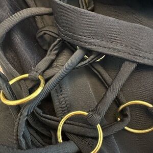 Strappy Black Halter High Thigh Bikini Set Gold Rings Womens Large