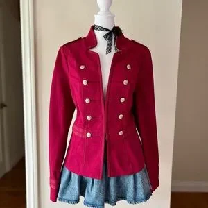 Gothic Military Jacket Tailored Double Breasted Buttons Preppy Red Pink 14 L