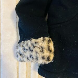 Adorable girl size 4 black coat with leopard faux fur trim on good condition