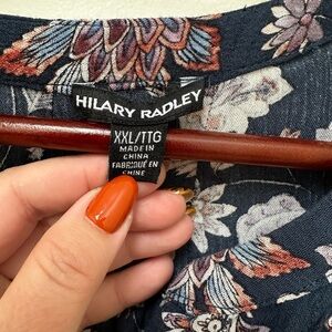 Hilary Radley navy blue tunic/blouse with a floral print in a size XXL. Buttons going down the front and tie at the waist to cinch it in. Excellent condition.