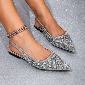 Rhinestone Pointed Toe Flat Slip-On Shoes, Comfortable & Versatile Shiny Flats