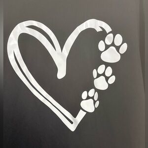 Black t-shirt featuring a white heart and paw print design. Perfect for animal lovers. P2P stretches 28 Inches Length 27 Inches. 100% Polyester