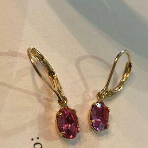 Rose shade Swarovski 8x6 oval drop leverback earrings These exquisite gold leverback earrings feature vibrant pink gemstones, adding a touch of sophistication to any outfit.
