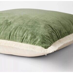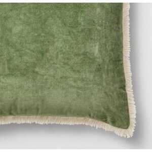 Oversized Square Solid Velvet Pillow w/ Fringe Army Green - Threshold Designed with Studio McGee NEW