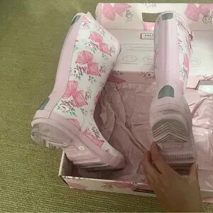 I can’t believe I’m letting it go. Sold out big girls Hunter rainboots x love shack fancy collab rainboots!