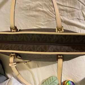 Michael Kors Large Zip top tote excellent one owner brown gold logo