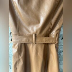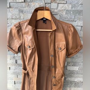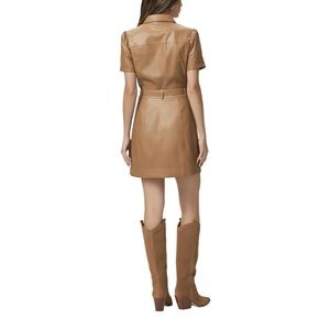 PAIGE Tan Camel Faux Leather Belted Button Down Short Sleeve Dress 2