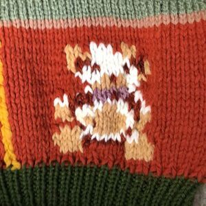 Adorable custom one of a kind 1980’s sweater with zipper. Striped arm detail with gold/yellow stripe up the side. Adorable graphics on each quadrant. Unique and rare. Statement piece. Well-preserved. Condition: Like new.