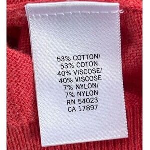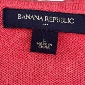 S3 2000s Y2K VINTAGE Coral knit cardigan sweater from Banana Republic. This piece features a delicate ruffle trim along the open front and two button closures. The soft blend of cotton, viscose, and nylon offers a comfortable and lightweight feel. Perfect for layering over a camisole for a casual outing or adding a touch of color to an office ensemble.