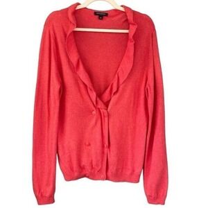 S3 Y2K VTG Banana Republic Coral Ruffle Cardigan Sweater Romantic Size L