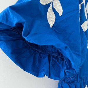 Beautiful Anthropologie Short Sleeve Embroidery Applique Maxi Dress in a vibrant blue, new with tags.
