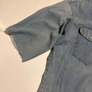 Good vintage condition. Note that the sleeves have been cut to short length with a raw edge, adding to the distressed, bohemian aesthetic. Slight fraying on the collar edges typical of age. No major stains.