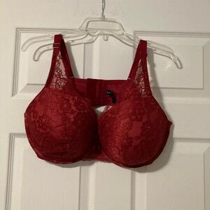 Torrid red lace plunge push up bra size 44 DD, some wear around the underwire