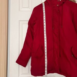 Old Navy red parka coat jacket with cozy hood and a faux fur trim. Jacket features a zip and snap closure.