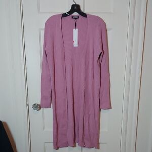 525 America Women's Ribbed Knit Duster Sweater In Dusty Lilac Size Large