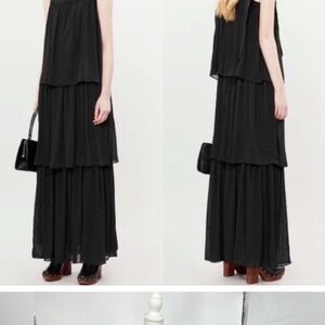 Happy Nature Black Maxi Layered Dress Full Length XXS NWT
