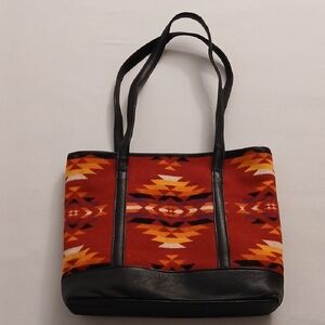 Gorgeous Pendleton purse/ tote in like new condition. Pretty red wool and black leather. Zippered opening and inside pockets. Measures 14 x 11 inches. Check out my other listings to bundle and save!:)