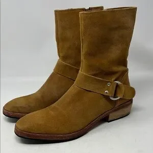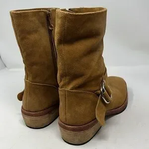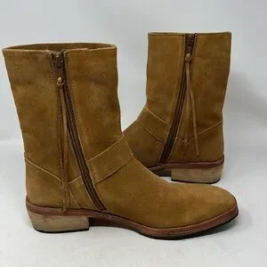 Like new condition awesome pair of suede boots from Free People. Mid calf ankle boot. Nice suede strap detail at the ankle. Zipper up the inside with log tassel. Camel color. Made in India.