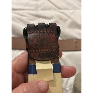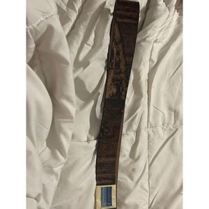 Embrace rugged style with this Mossy Oak genuine leather belt. The rich brown leather is adorned with a realistic camouflage pattern, perfect for adding a touch of the outdoors to your look. Featuring a classic black buckle, this belt offers both durability and timeless appeal. Elevate your everyday outfits or gear up for outdoor adventures.