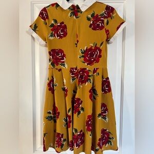 Cute floral dress with pockets and Peter Pan collar from Smak Parlour / Unique Vintage. Yellow with red flower pattern!