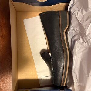 Elegant black leather loafers by Cole Haan. Sleek design with a comfortable fit. Never worn.