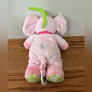 Adorable pink elephant plush toy with floral ears. Perfect for cuddling and playtime. Pull on ring on tail for lullaby. New without tag. Please see all pictures and video.