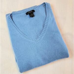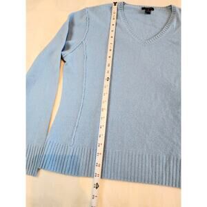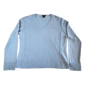 Prive Womens XL 100% Cashmere Powder Blue V-Neck Sweater Super Soft Quiet Luxury