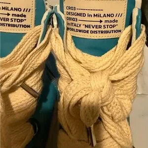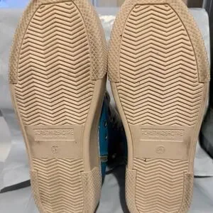 Step up your style with these chic high-top sneakers. Featuring a vibrant blue and cream design, they're perfect for any casual outing.
