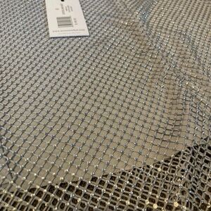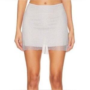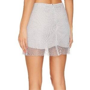 NWT WeWoreWhat Crystal Mini Skirt Size 0 In Color Silver, crystal studded silver fishnet with silver stretch fabric lining, rear hidden zipper with hook/eye closure, 16” length, 96% polyester, 4% spandex, brand new in poly bag, smoke free home