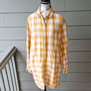 PACT Mustard Yellow Gingham Coastal Double Gauze Oversized Button Up Tunic ML