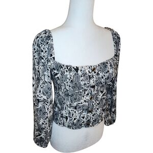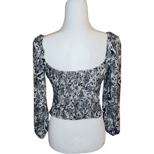 ASTR Cropped Square Neck Floral Blouse Black White Size Medium