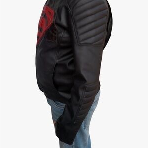 Embrace your inner superhero with this stylish Superman leather jacket. Featuring a bold red Superman logo on a sleek black background, this jacket is perfect for fans and fashion enthusiasts alike. Crafted for comfort and style. NWOT