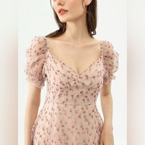 Embrace elegance with this charming floral dress. Featuring delicate puff sleeves and a flattering silhouette, it's perfect for any occasion.