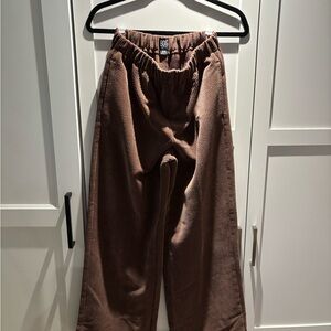 Corduroy texture with a rich brown hue. Versatile and stylish.