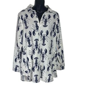 Sigrid Olsen women’s linen blend lobster print top vacation Lagenlook beach