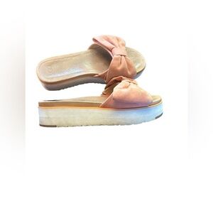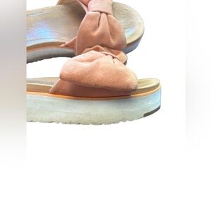UGG Joan Oversized Bow Slip On Platform Sandals sz 8 color salmon preloved with minor signs of wear. Please see pictures for details of condition